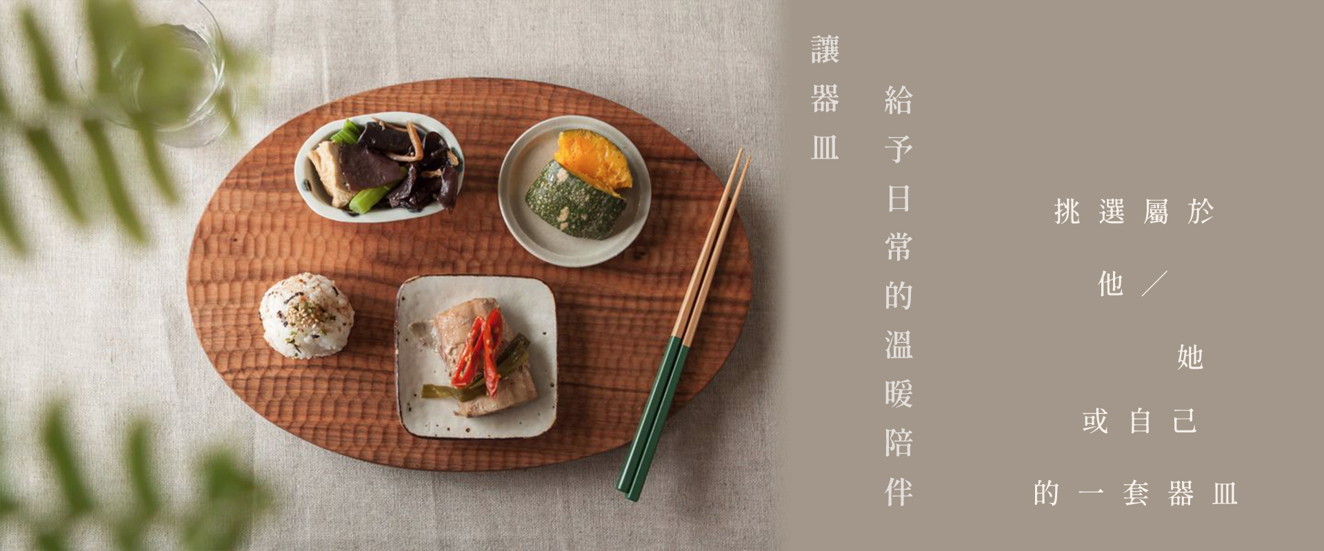 食事在一日中是不可少的項目,有時好好的吃一餐,也能將疲憊勞碌的心,好好的沉澱下來。器皿是個可以長久陪伴生活的夥伴,料理盛裝不可缺少的器物。
