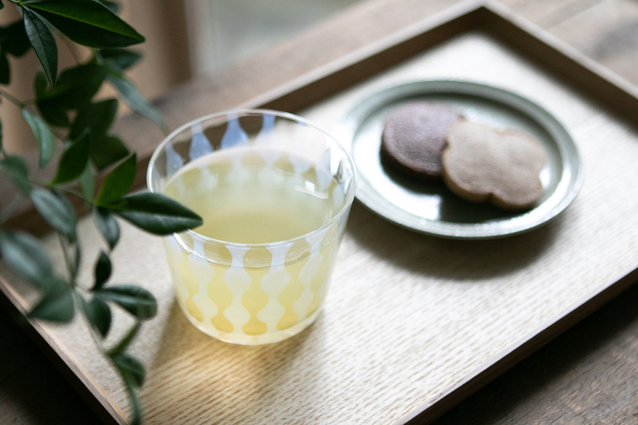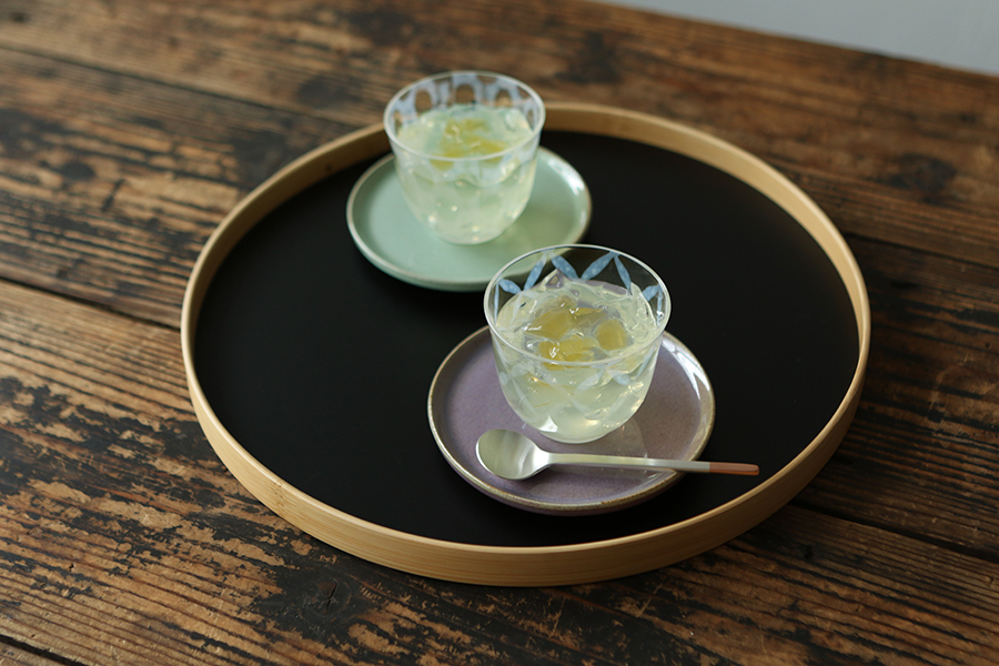有格子、玉十草、卷上三種紋樣,豬口杯的外型,在日常上很實用。打開冷凍庫挖一球喜愛口味的冰淇淋,或是倒入果汁、氣泡水等等,輕鬆營造出夏日的清涼感。