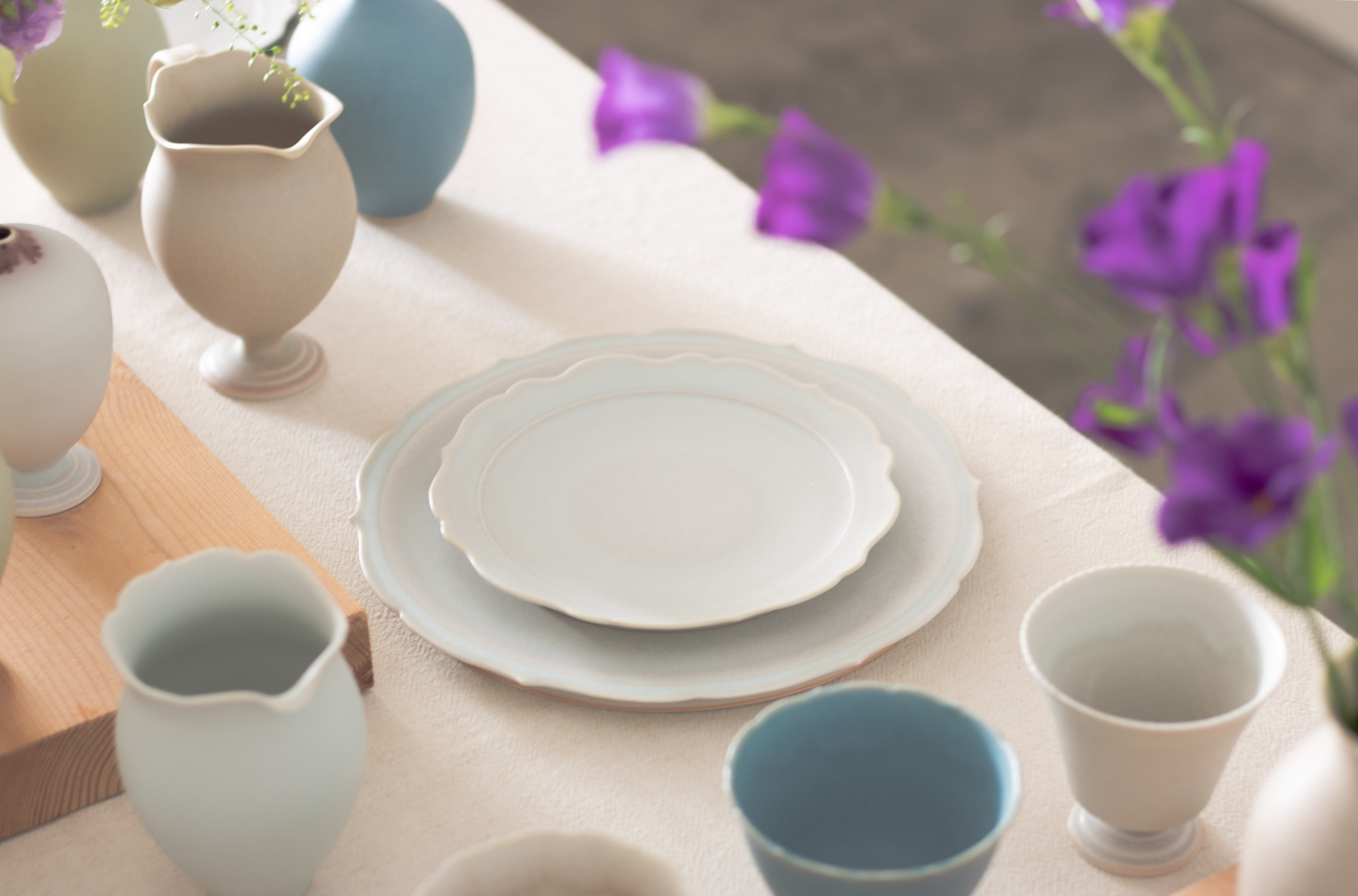 杉原万理江歷經無數次試驗與調整所完成的釉藥,讓器皿兼具簡約的造型、豐富的表情與柔和的質地,同時具備不易沾染污漬的貼心設計。