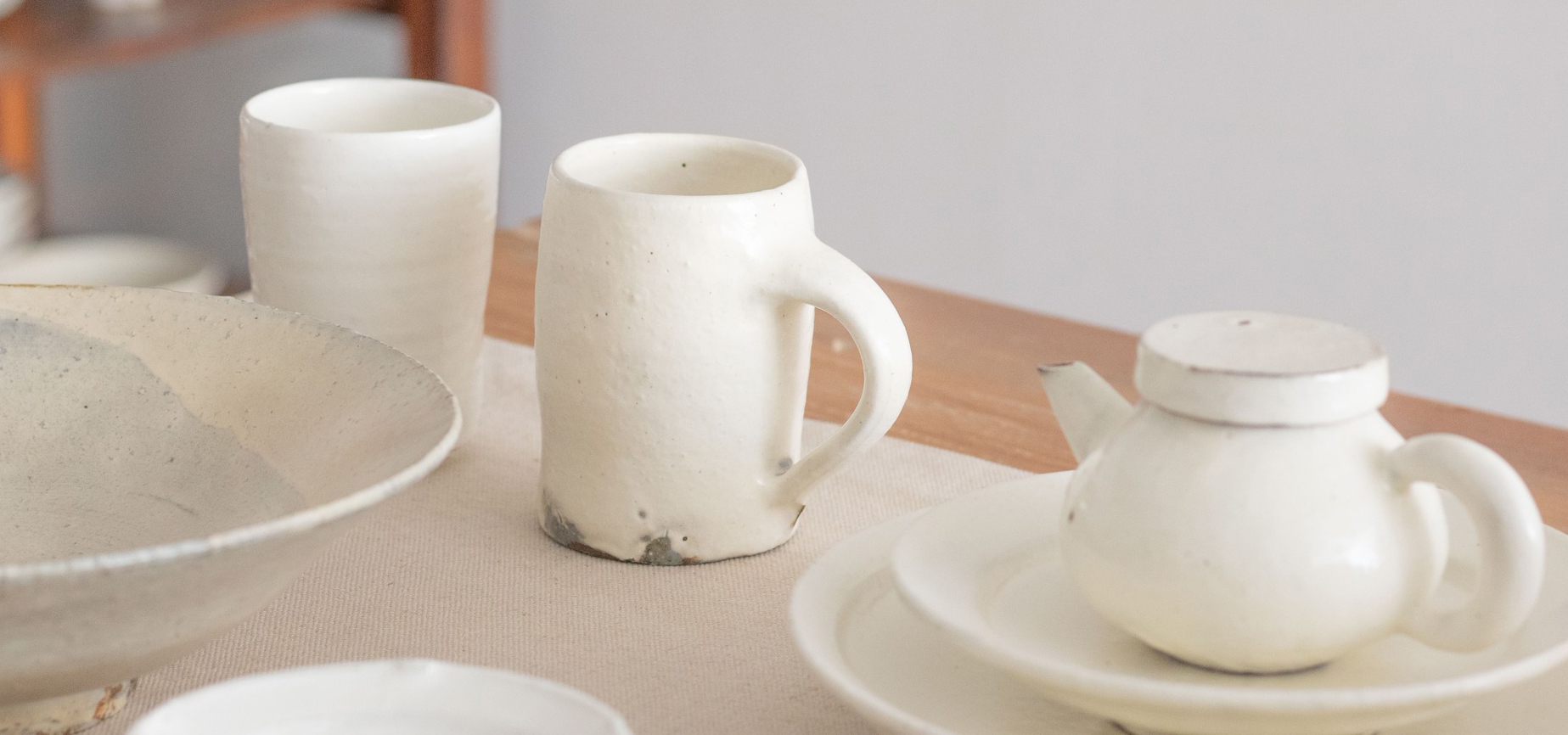 粉引器皿會帶出生活的痕跡,昇華為更富有溫度的白,成為獨一無二的器皿。感受粉引帶來的趣味,陪伴日常的生活。
