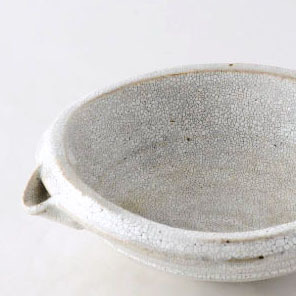 燒製時因為釉藥沒有完全溶解,經由收縮變成一粒粒神似鯊魚皮的狀態,統稱為「梅花皮」。常見於使用粉引(化妝土)的器皿上。梅花皮能讓器皿的表情更豐富,呈現獨特魅力。