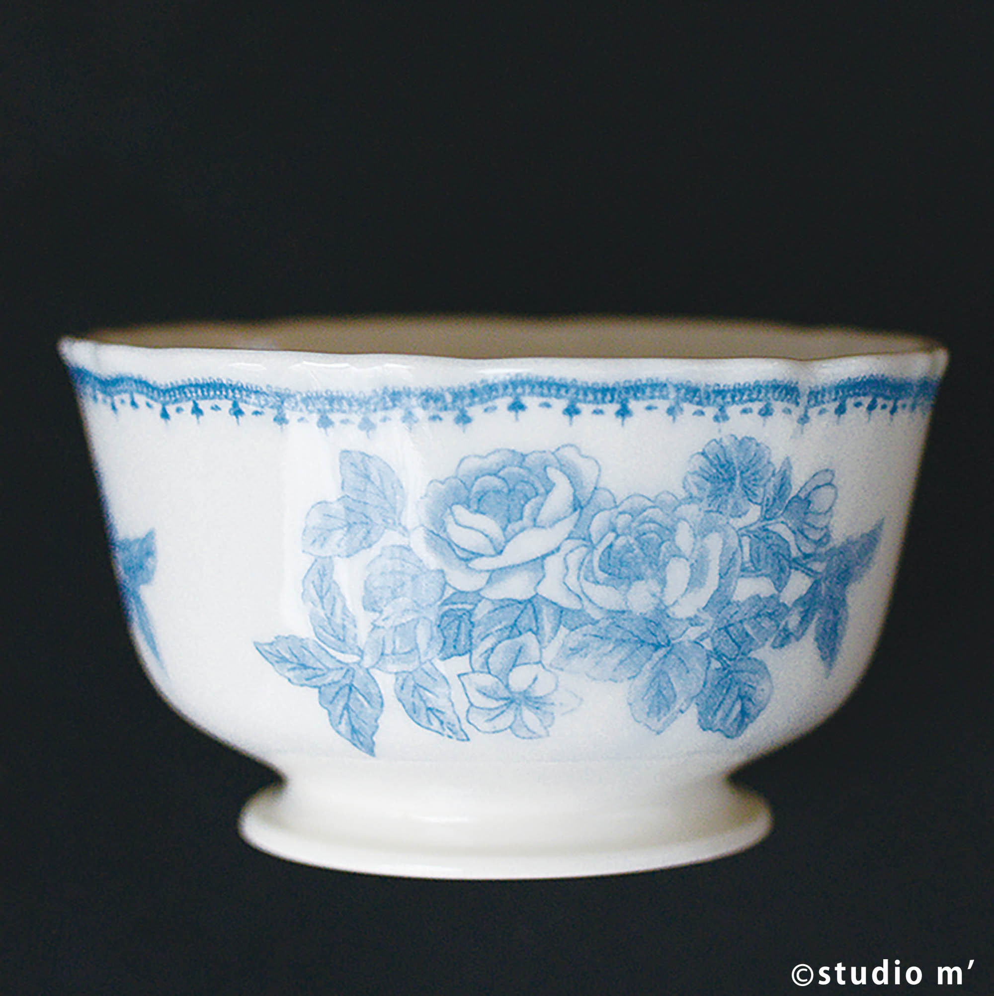 將印有圖紋的和紙手工貼於器皿上再加以描繪。因此多少會有起皺、模糊、對花較不精準的狀況。雖然是轉印的紋樣,卻有著手工的溫度。